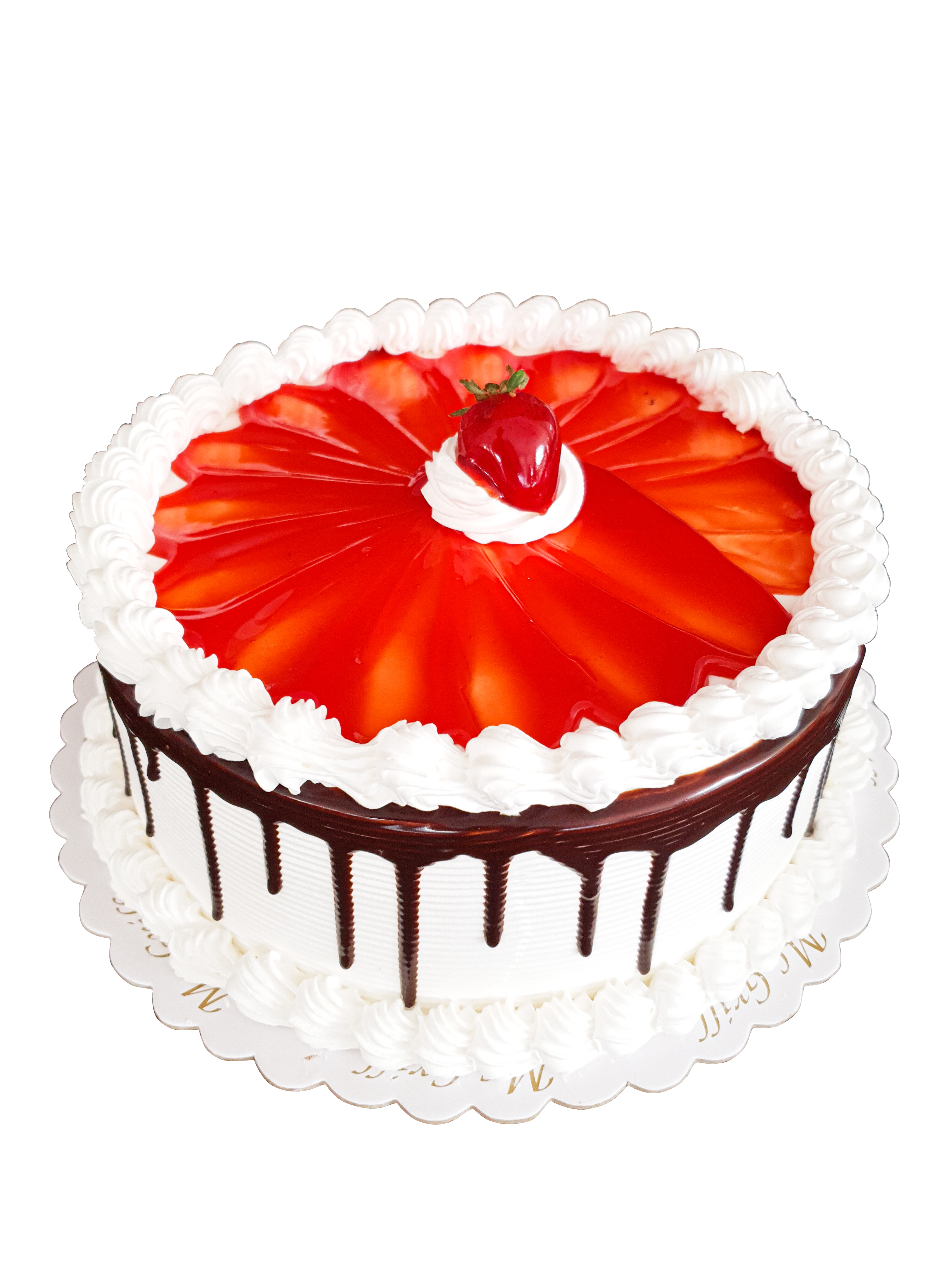 Keke de chocolate, relleno de manjar y mermelada de fresa
